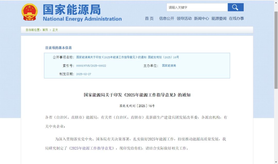 国家能源局发布重磅文件!《2025年能源工作指导意见》
